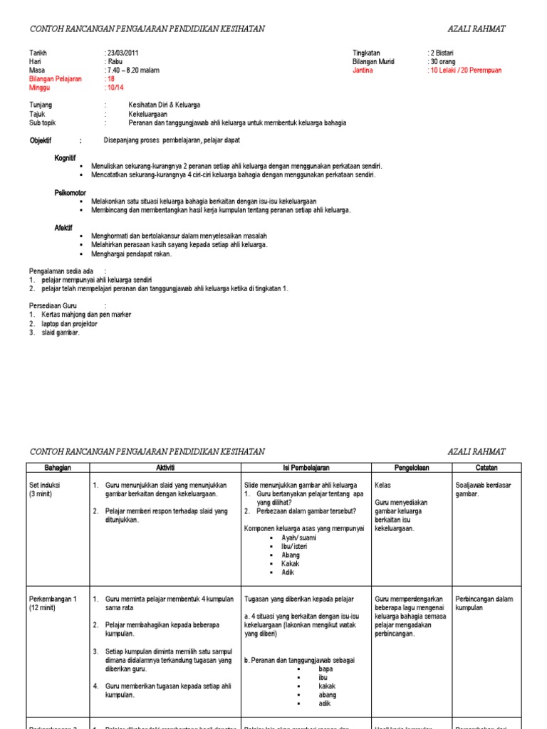 Contoh rancangan pengajaran pendidikan kesihatan.